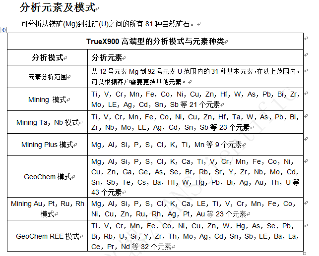 技术性能 1. 真正实现了现场快速,准确的检测,直接显示元素的ppm含量或者百分比; 2. 全球现有分析仪中体积最小,速度最快,精度更高; 3. 可以检测样品:矿石、岩石、矿渣、碎片、土壤、泥土、泥浆等固体和液体物质; 4. 不规则或者很小样品的智能探测,及时是很小样件也可测试辨认; 5. 只需直接接触待测物表面,即可现场确定矿石等级、元素种类及矿石中各元素的含量; 6. 仪器在阳光直射的高温高日照量的情况下也能保持高性能等特点,这得益于仪器设计中充分考虑低功耗及X射线管高温的及时排放; 7. 可承受恶劣的工作环境。耐磨防刮花全金属外壳密封,使仪器可在雨天、尘土飞扬的矿山环境中正常工作; 8. 特别考虑到工作人员长期使用性,仪器设计已确保工作人员安全性为第一要素,关键部位全金属封装,使的仪器辐射量做到全球最低水准; 9. 电磁干扰被屏蔽,即使在靠近手机或双向无线通信装置处也能正常工作; 10. 操作语言包括简体中文、英语、西班牙语、阿拉伯语、葡萄牙语、法语、俄语等7种语言; 11. 最快的分析速度, 仅需2秒钟就可识别矿石元素; 12. Android 2.3 自由及开放源代码的操作系统;